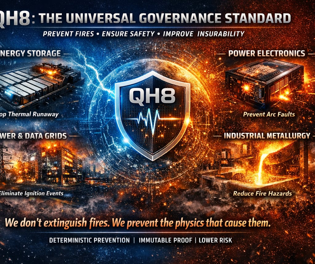 QH8 provides a deterministic governance layer that governs whether energy is permitted to enter a material system before damage, ignition, or runaway can occur.