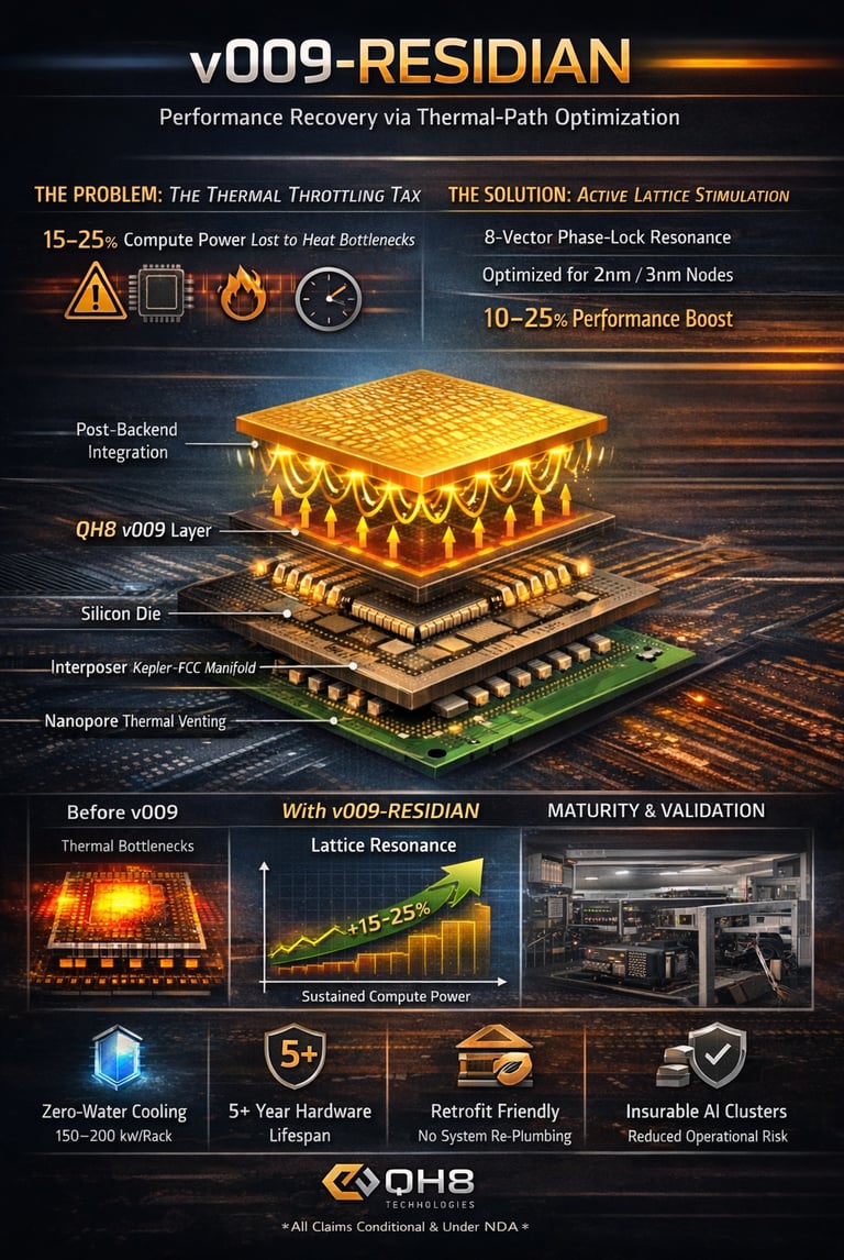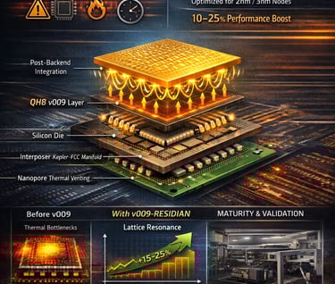Model8-vector phase-locked thermal modulation Frequency Node-optimized (2nm/3nm); specific values under NDA Integration Post-backend (package / interposer) Governance Synchronized with v008 kill-chain (<20 ms) Function Thermal-path optimization (not cooling) StatusModeled; lab validation in progress (Tel Aviv, 2026)